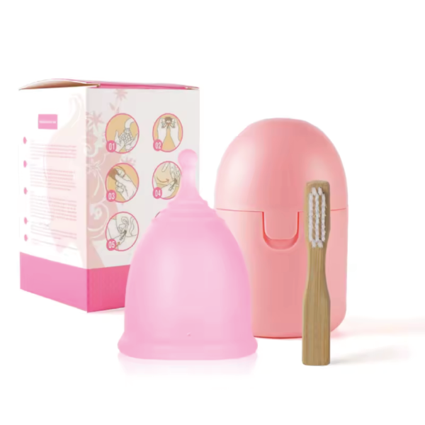 Copa Menstrual de Silicona Sanitaria + Esterilizador Apto para Microondas | Reutilizable y Ecológica color rosa