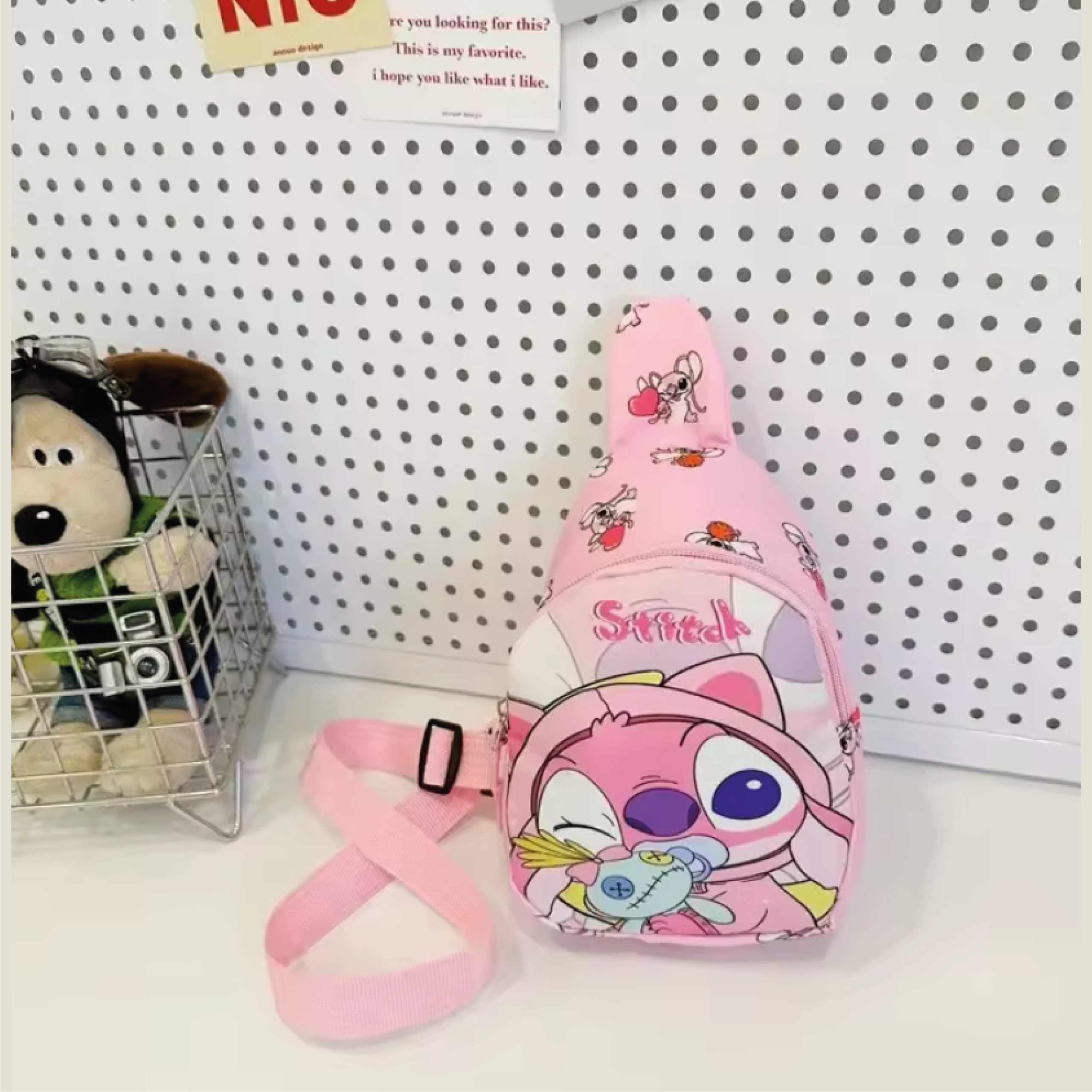 Mini Bolso Cruzado Stitch y Ángel – color rosa pastel